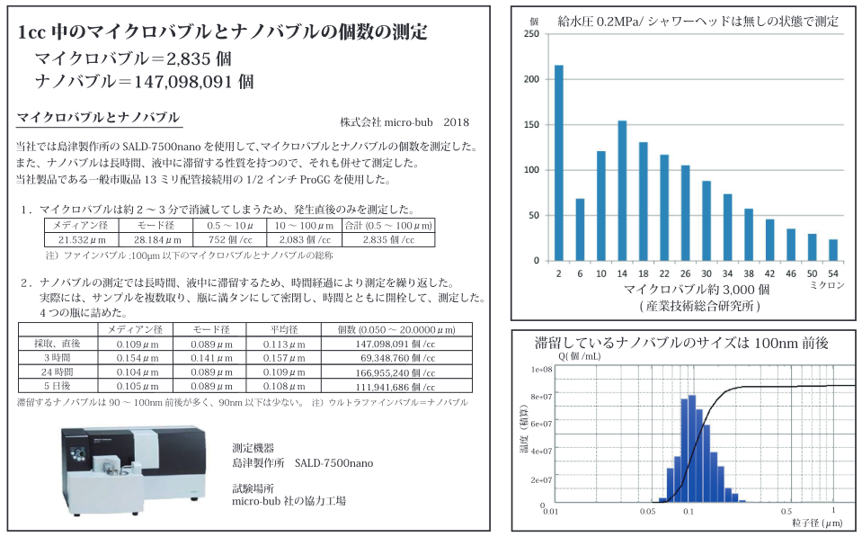 マイクロ・ナノバブルは幾種類かの生成方法がありますが、 テクノマイクロ・ナノバブルは業界唯一のキャビテーション方式で発生させます。 この方式だと水道圧=0.15Ppa(メガパスカル)以上で発生可能で中濃度から高濃度のマイクロナノバブルを発生できます。 これまでのエジェクター方式や旋回方式などでは空気の注入が必要であったり、高圧水流でないとバブル発生が難しく小型で高性能なものは殆どなかったのです。 1ccあたり1億5,000万個のナノバブル(0.1μm経)を発生し、数日後もナノバブルは1ccあたり1億個以上残留しています。 ![]() ![]() 詳細はこちら |